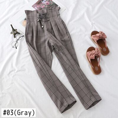 送料無料୨♥୧ シックサマーレディースパンツ ウェストブラックアプリコットカーキグレー格子柄ハーレムズボンバンドルーズ AOS51127599841