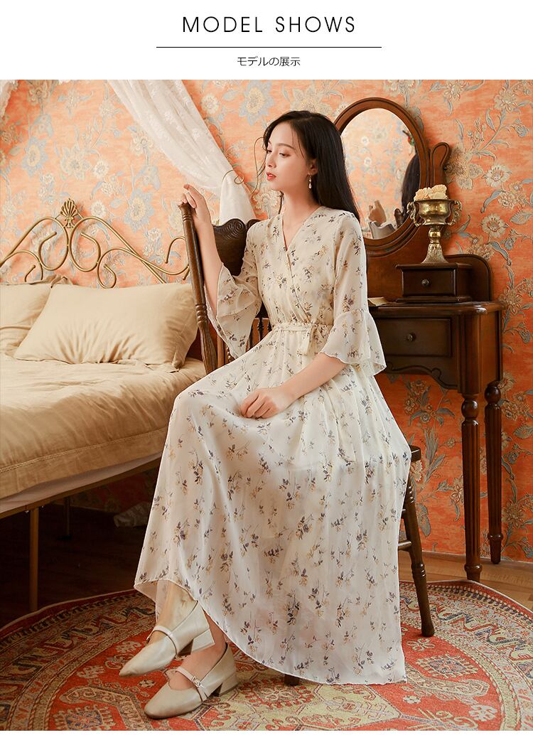 送料無料୨♥୧ 2021森サマーレディースロマンチックロングドレス Vネックフローラルプリントウェストvestido甘いシックシフォン AOS29904185878