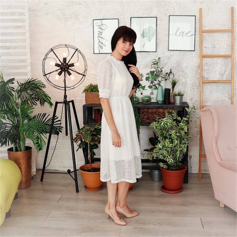 送料無料୨♥୧ 森サマーレディースホワイトミディドレス フローラルレースホローでる半袖スリーブシックパーティー甘いドレス ワンピース AOS32893019912