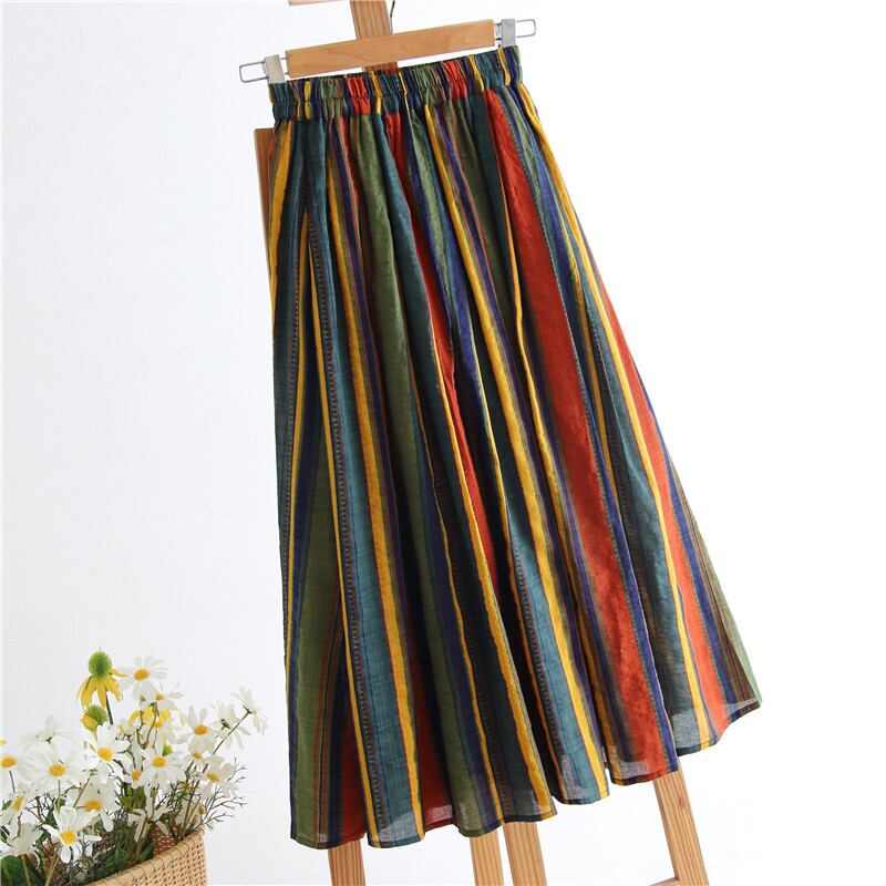 送料無料୨♥୧ ese森レディースミディスカート ウェストストライプジュープヴィンテージコットン AOS35633799490