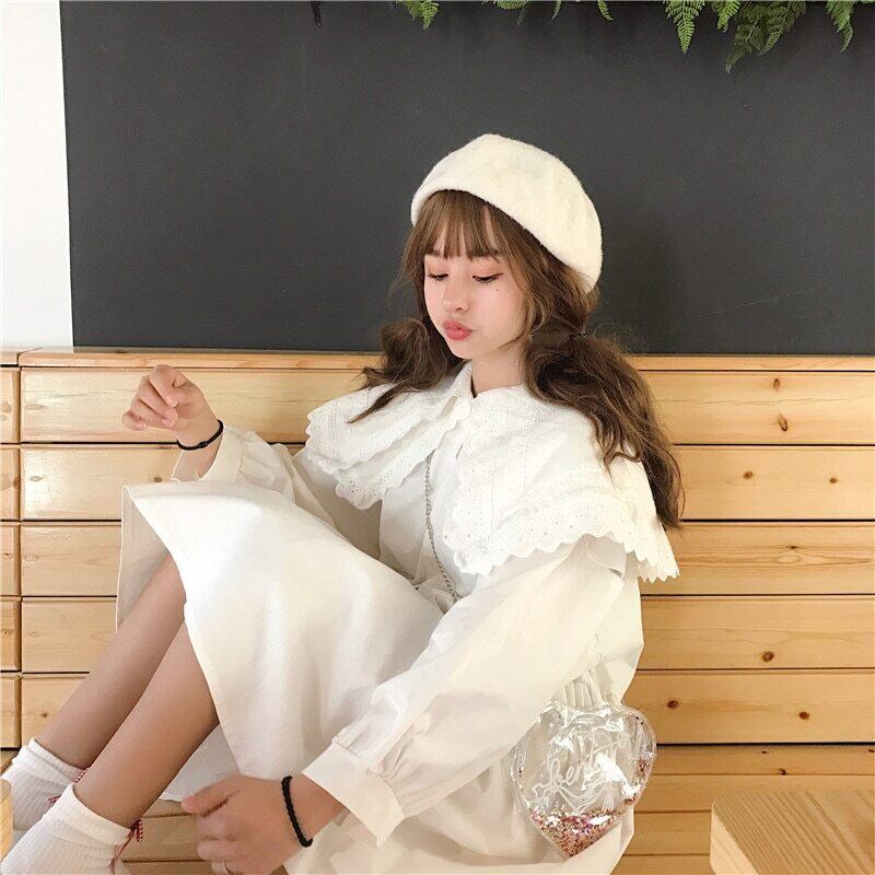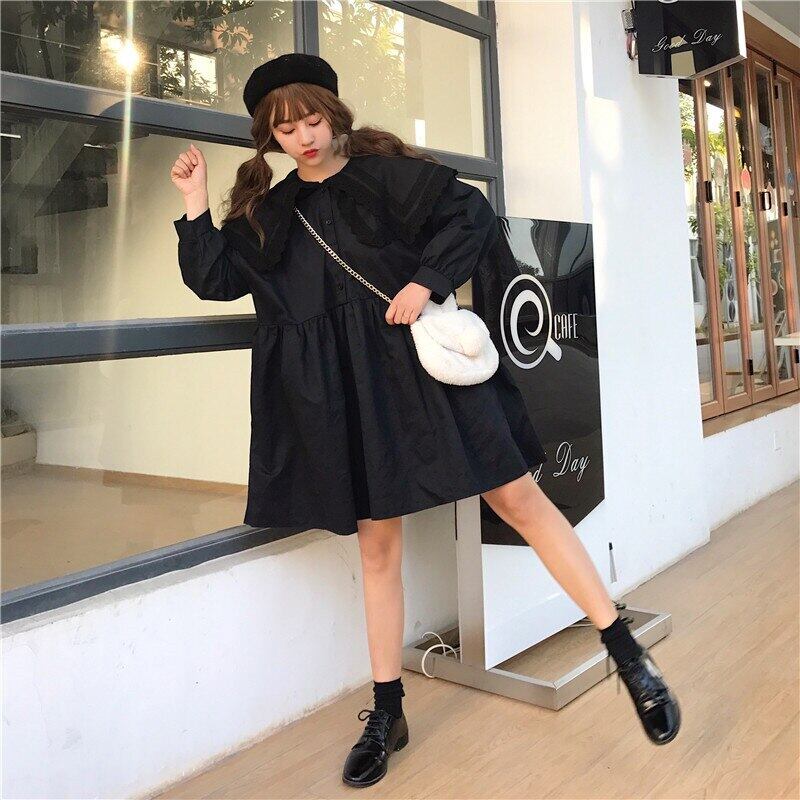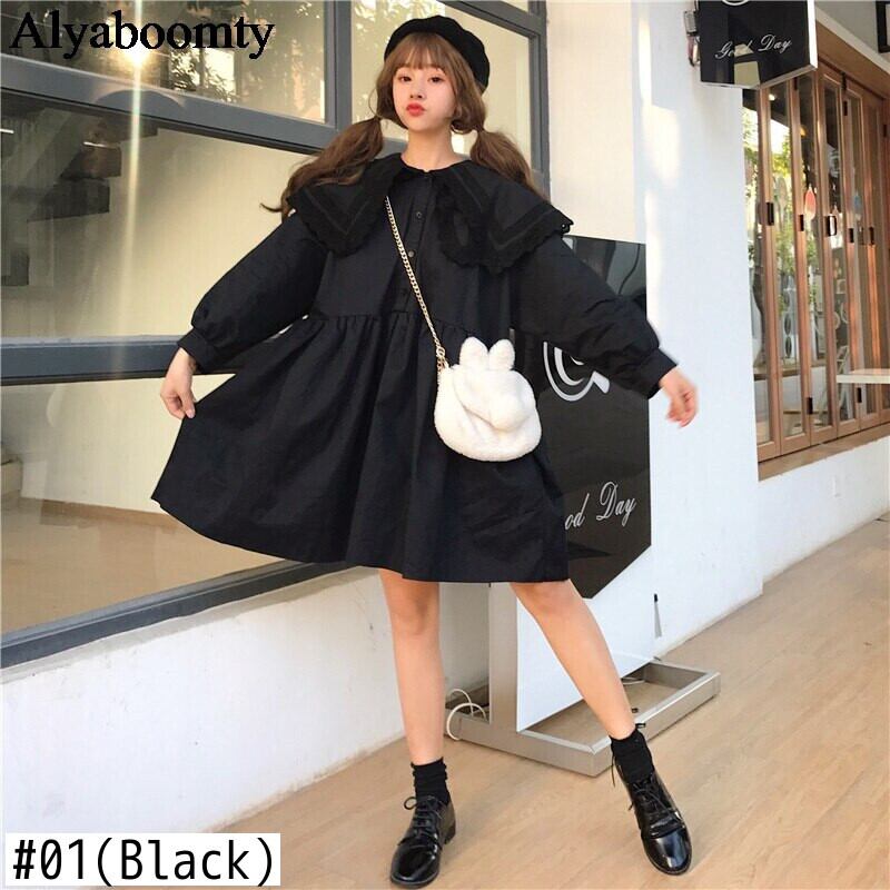 送料無料୨♥୧ ese原宿レディースミニロリータドレス レースカラー特大ブラックホワイト可愛いコットン AOS42310581797