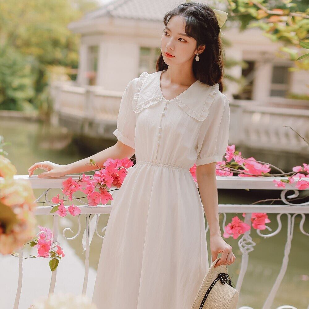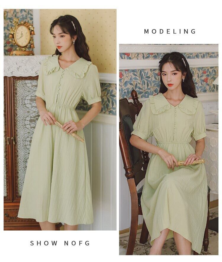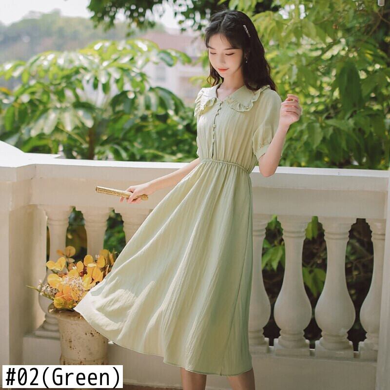 送料無料୨♥୧ 2021ese森サマーレディースミディドレス 断るカラーホワイトグリーン甘い AOS67594929591