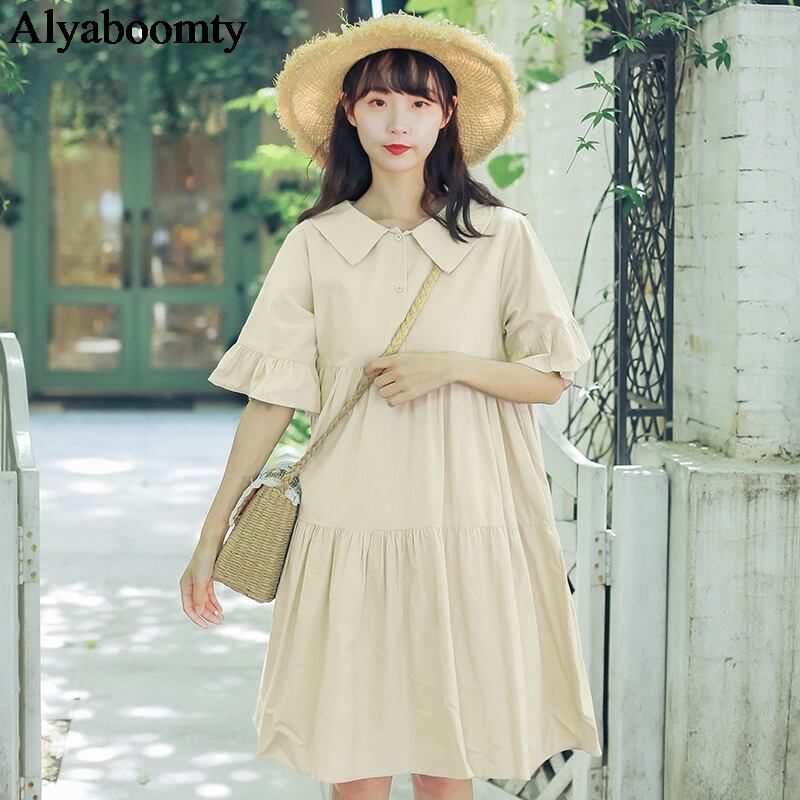 送料無料୨♥୧ 森キャンディーカラーサマーレディース甘いドレス ピーターパンピンクグリーンアプリコットルーズ可愛いフリル AOS60885457601