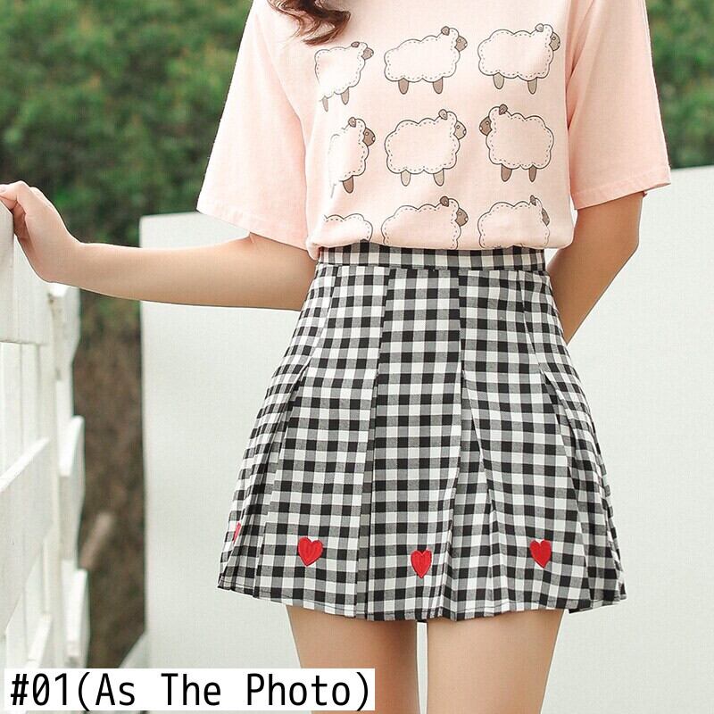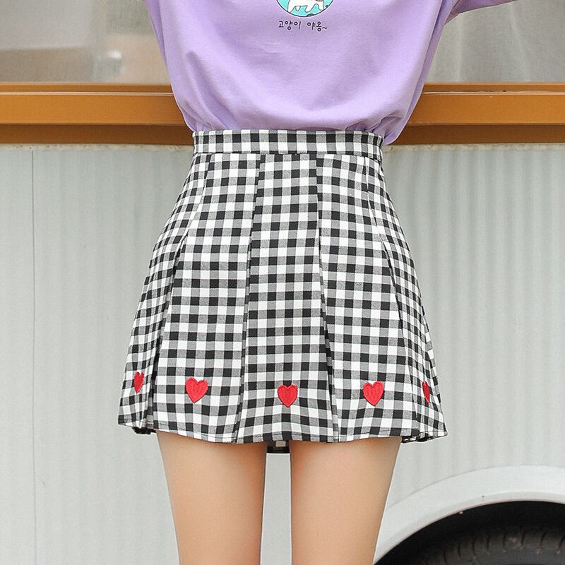 送料無料୨♥୧ eseロリータスタイルレディースミニプリーツスカート ウェスト格子柄刺繍ハート甘い可愛いプレッピー森 AOS64765946292