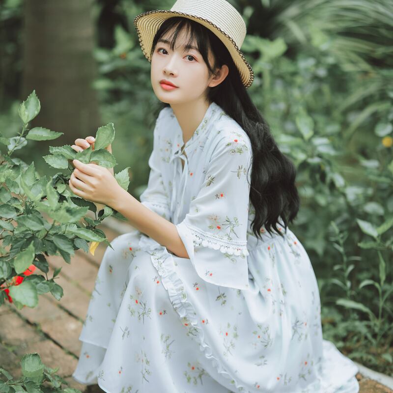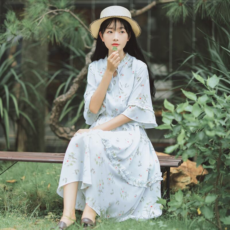 送料無料୨♥୧ 2021森サマーレディース甘いドレス フローラルプリントシックtelベスティドスシフォンフリルパーティーミディ AOS19577745547