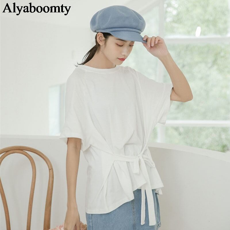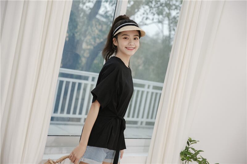 送料無料୨♥୧ サマーtシャツ レディース原宿ブラックホワイトバンドベラノ2021コットンルーズトップス AOS81831027093