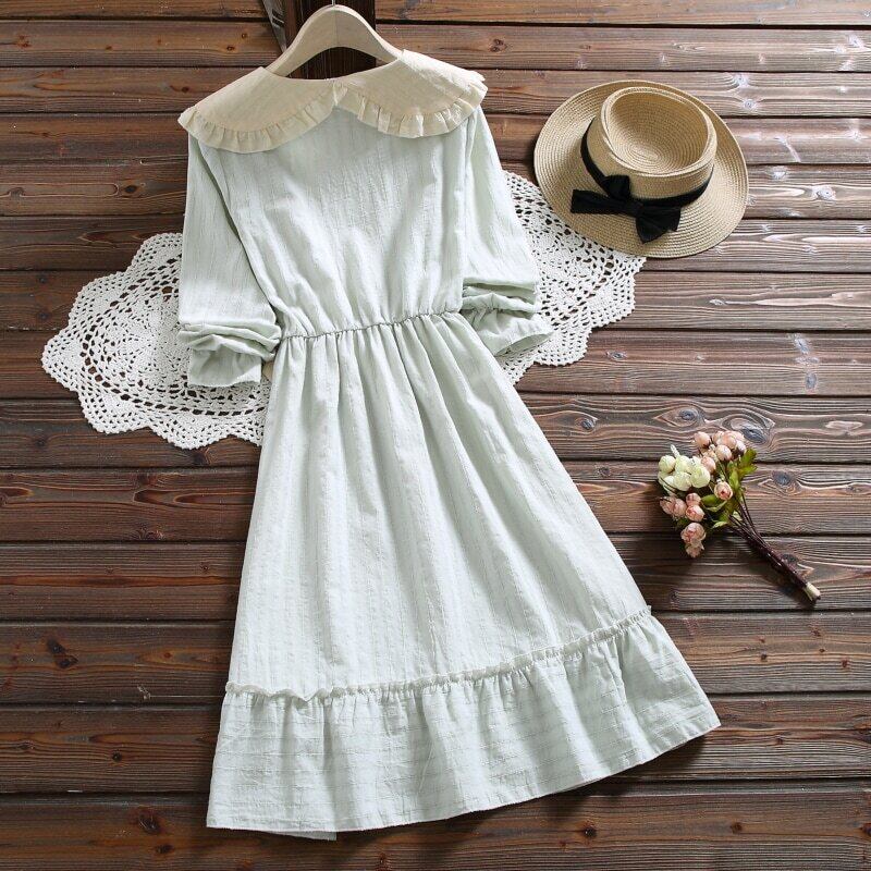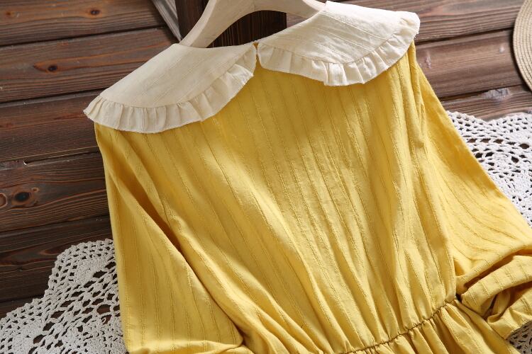 送料無料୨♥୧ eseプレッピースタイルオータムスプリングレディース可愛いドレス イエローグリーンネクタイコットンのロリータフリルミニ AOS55588868178