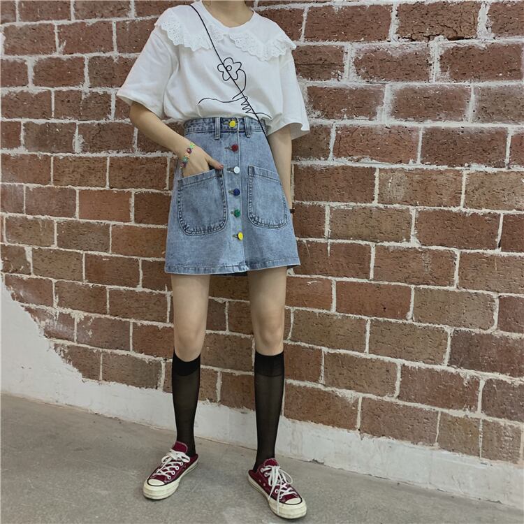 送料無料୨♥୧ 2021スタイルサマーレディースミニスカート ウェストブルーデニムボディコンAラインヴィンテージと AOS67745327125