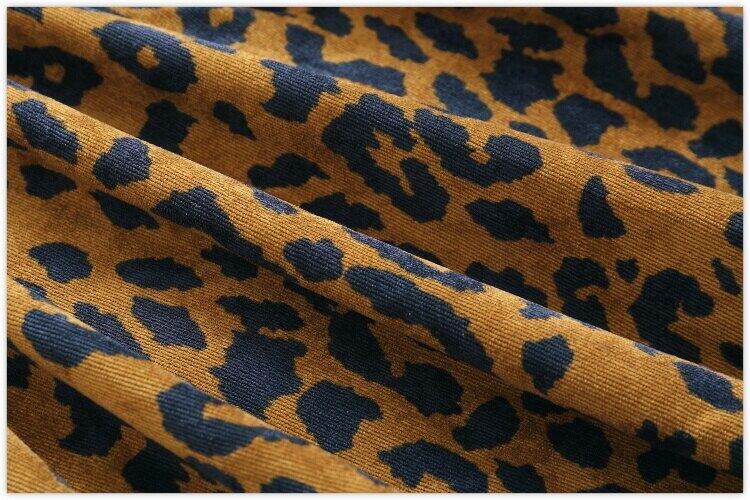送料無料୨♥୧ 森秋ウィンターレディースロングドレス スタンドカラーカラーレオパードプリント柄コーデュロイローブベスティドス長袖スリーブヴィンテージ AOS80734621303