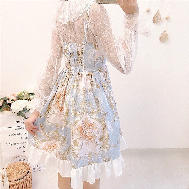 送料無料୨♥୧ ese原宿サマーオータムレディース2個ドレス フローラルプリントバンド可愛い森ロリータスタイルフリル AOS83043205573