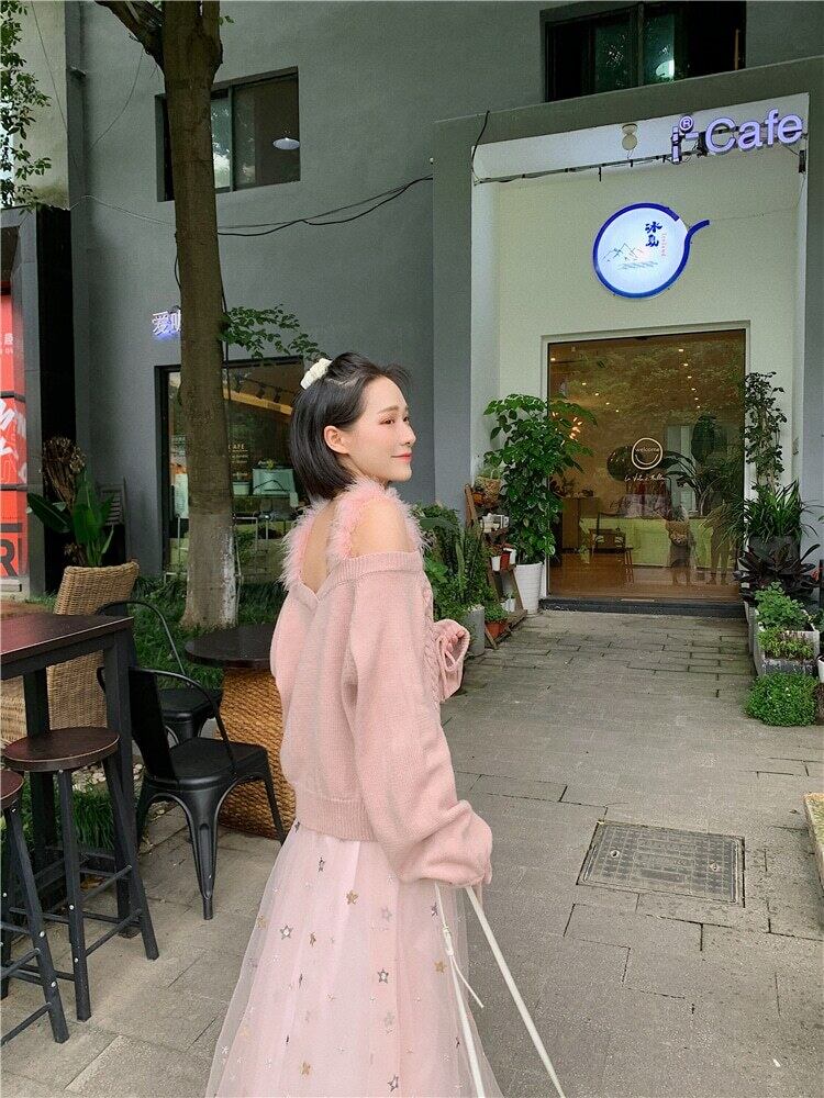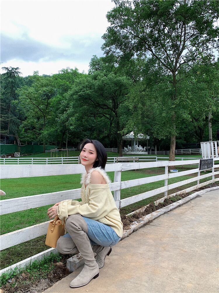 送料無料୨♥୧ キャンディーカラーオルチャンレディースストリートウェアセーター オフショルダースタイリッシュピンクイエロー可愛いニットトップス AOS54114704858