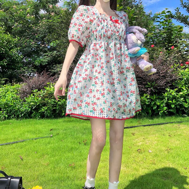 送料無料୨♥୧ 2021eseサマーレディースロリータスタイルミニドレス 平方カラー可愛いプリントリボンプレッピーの AOS23438263081