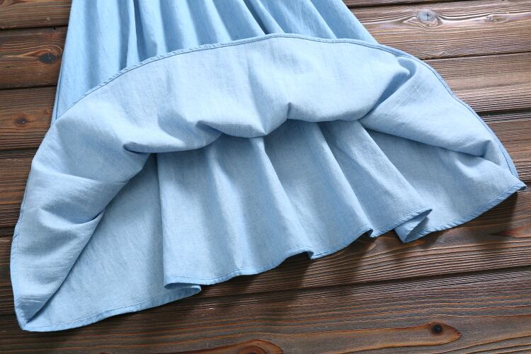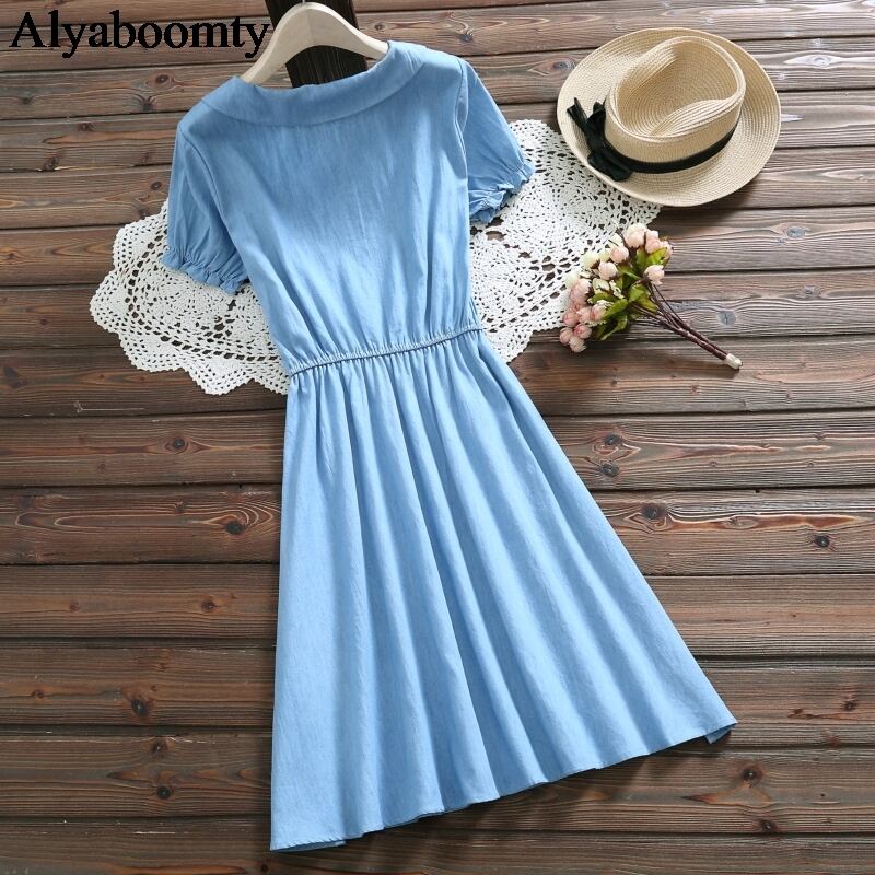 送料無料୨♥୧ ese森サマーレディース可愛いデニムドレス 刺繍ネコリボン半袖スリーブドレス ワンピース AOS55501506530
