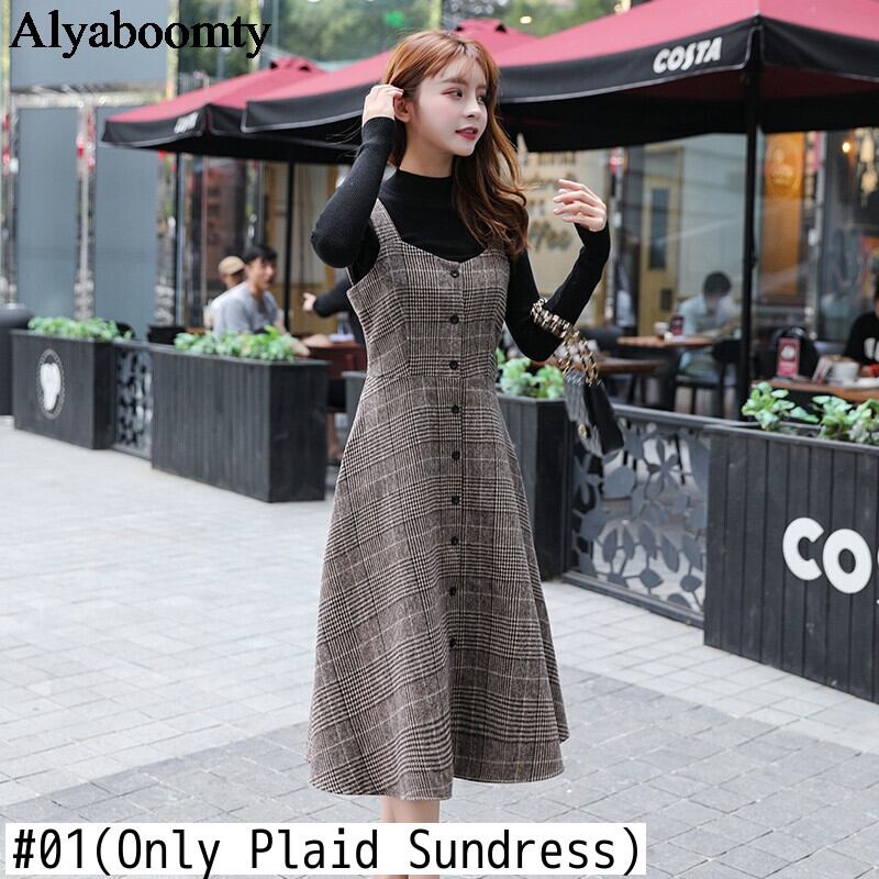 送料無料୨♥୧ イングランドスタイルオータムウィンターレディースミディドレス ヴィンテージ格子柄ノースリーブシックvestido AOS24062718468