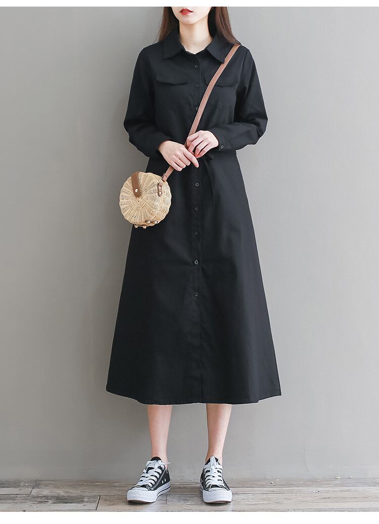 送料無料୨♥୧ ese森オータムレディースブラックドレス ヴィンテージルーズフェミニーズベスティドスコットンロングレディシャツ AOS99535500193