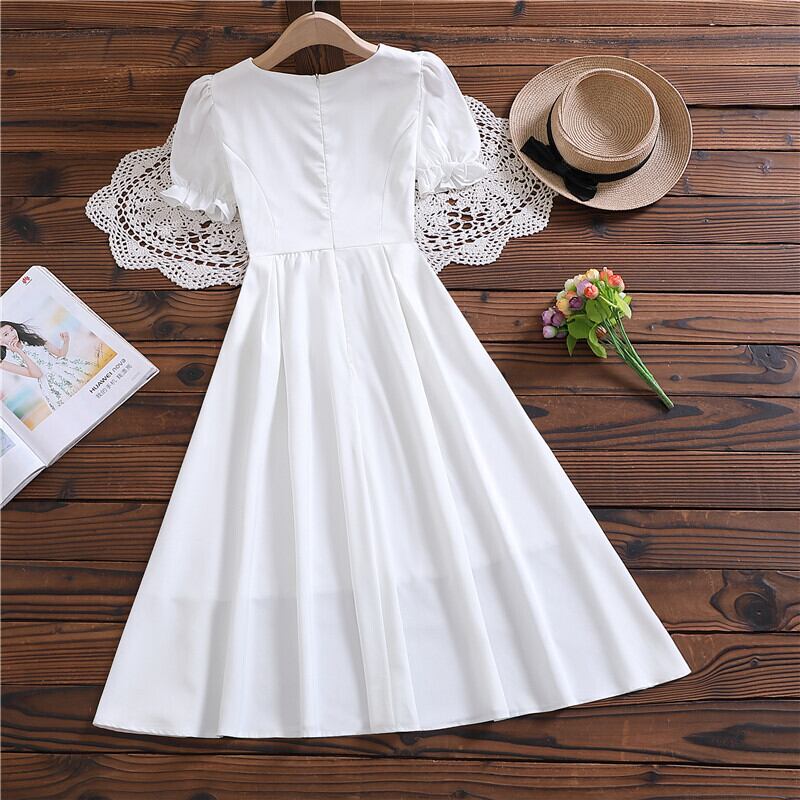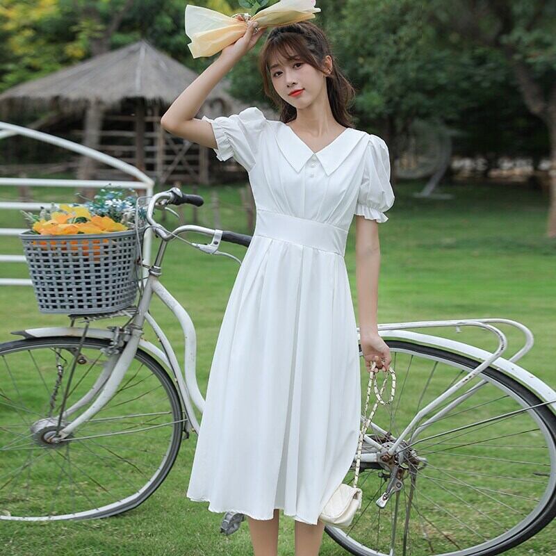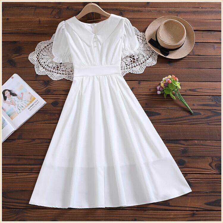 送料無料୨♥୧ 2021森サマーレディースロングドレス ピーターパンカラーホワイト甘い半袖スリーブシックレディミディ AOS39612741455