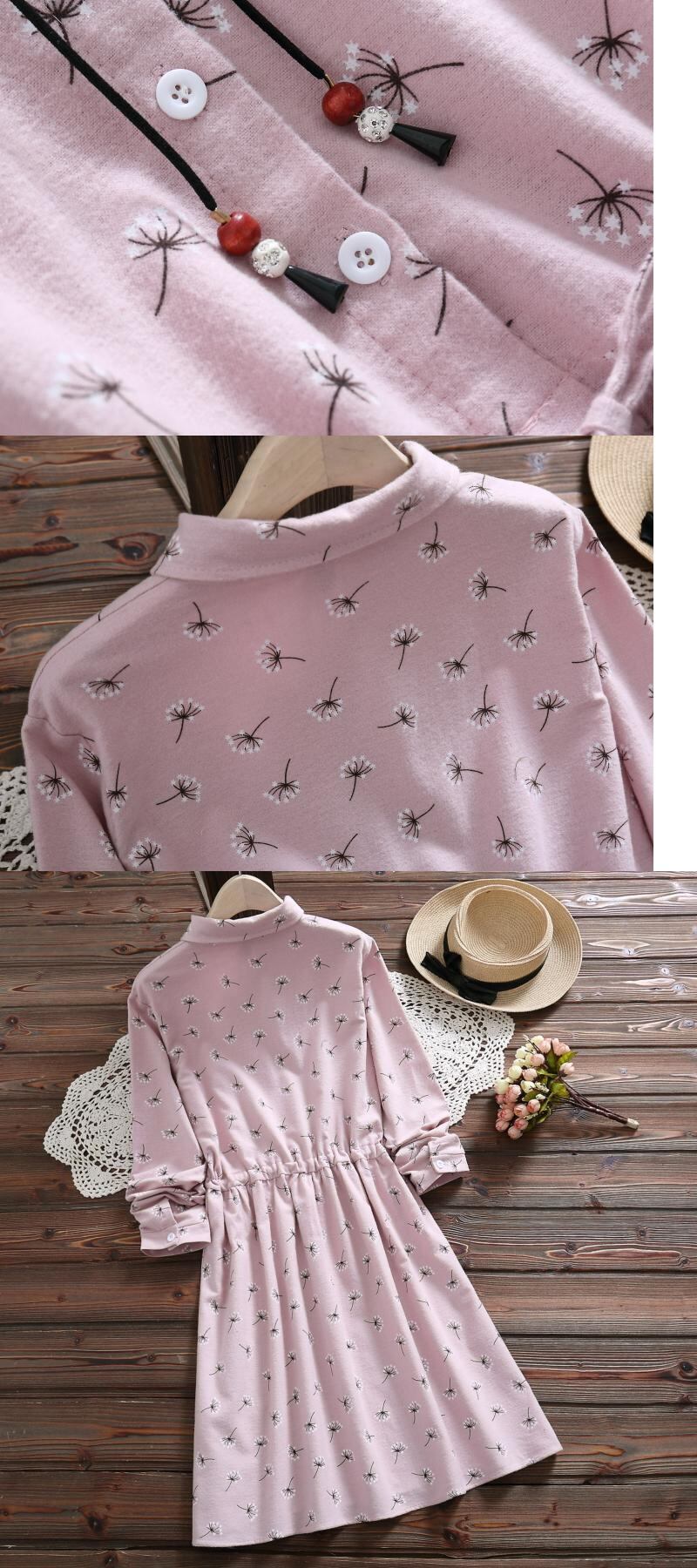 送料無料୨♥୧ 2021eseプレッピースタイルスプリングレディース可愛いドレス ピンクグリーンたんぽぽレースアップベスティドス長袖スリーブ新鮮なドレス ワンピース AOS79869281037