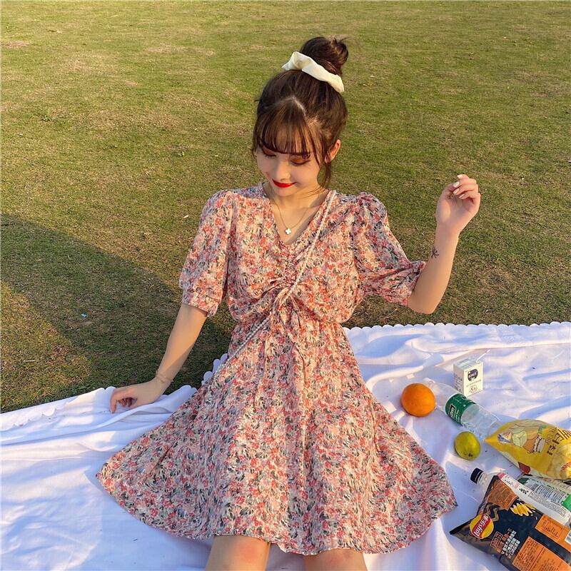 送料無料୨♥୧ 2021草原シックサマーレディースミニフローラルドレス Vネック紫のピンクFlowerデザイン ロマンチックドレス ワンピース AOS44199480342