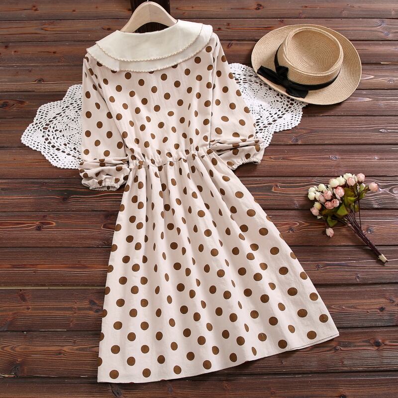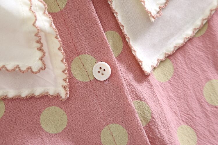 送料無料୨♥୧ 森オータムスプリングレディース可愛いドレス カラーピンクアプリコットレースアップコットン水玉 AOS22954948935
