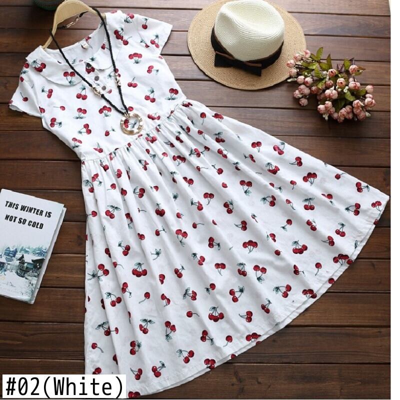 送料無料୨♥୧ ese森サマーレディースドレス ピーターパンカラーフルーツプリントホワイトブルー可愛いプレッピースタイルドレス ワンピース AOS99662434290