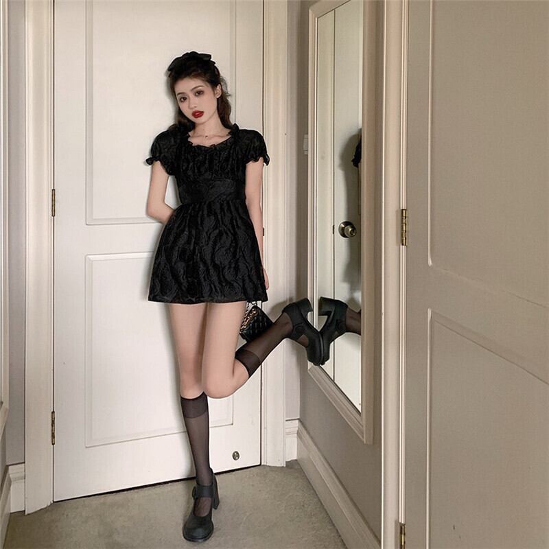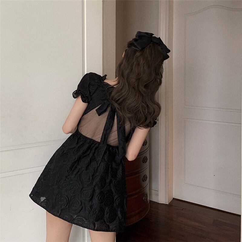 送料無料୨♥୧ eseロリータスタイルサマーレディースミニドレス カラーアプリコットブラックバックレスパーティー可愛い甘いバンド AOS65818816552