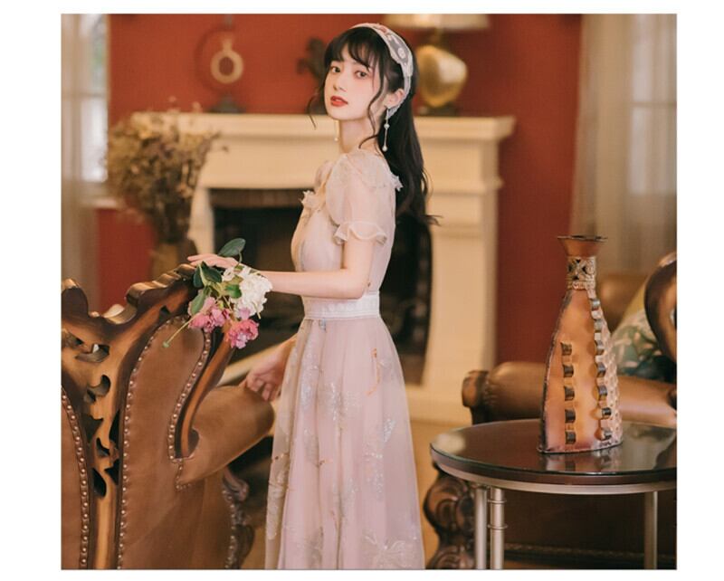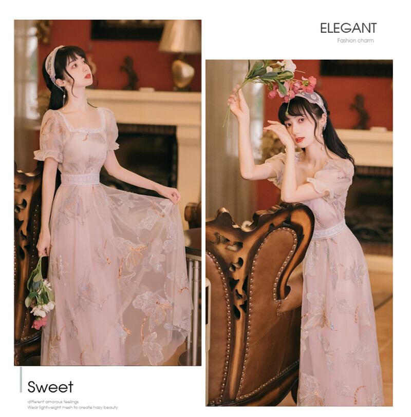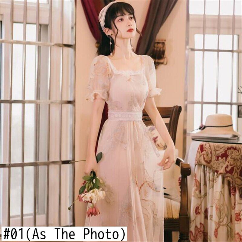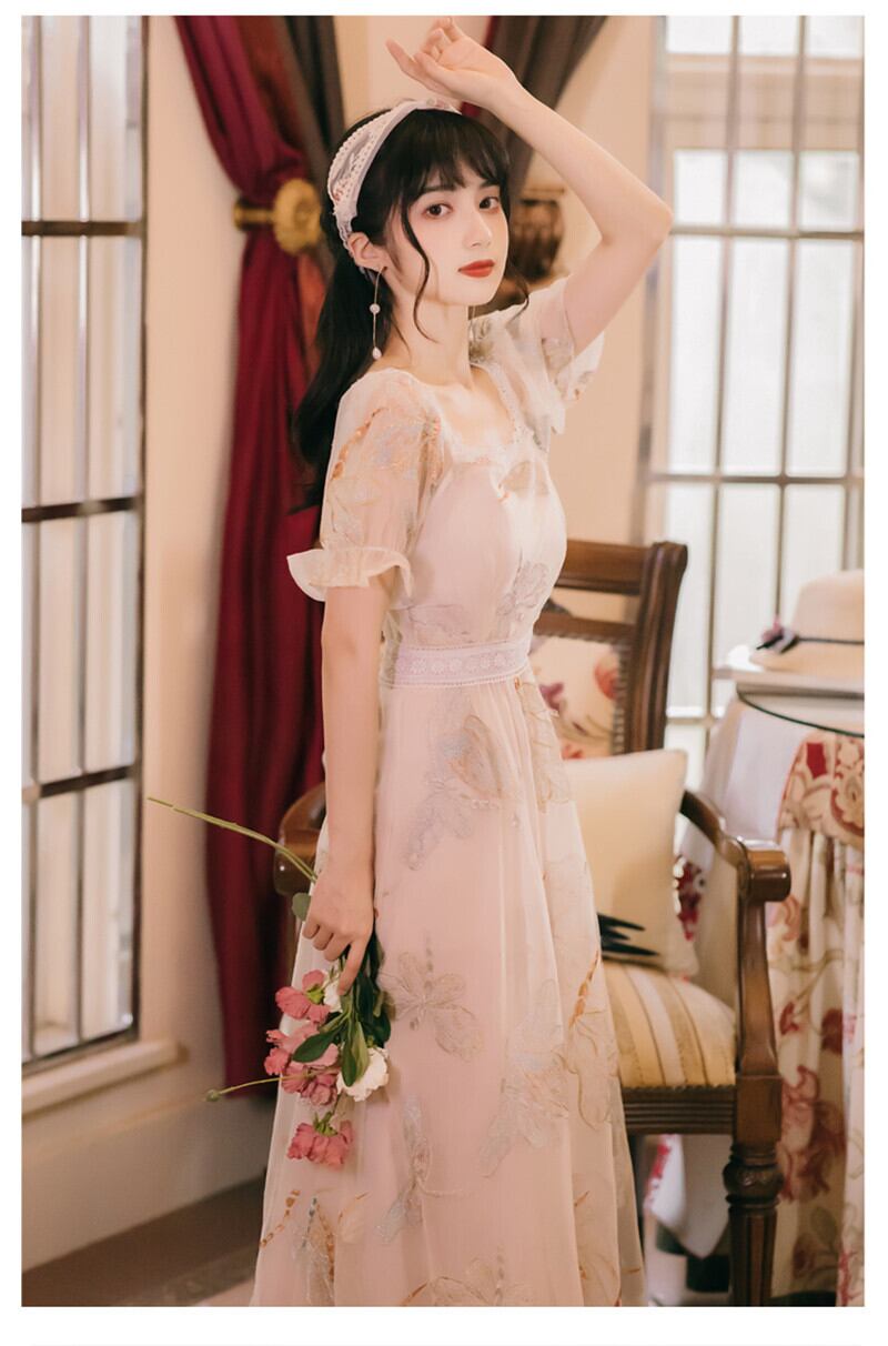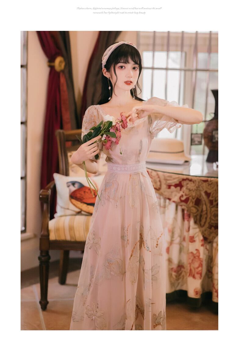 送料無料୨♥୧ 2021サマーレディース妖精マキシメッシュドレス 平方カラー繊細ゴージャス刺繍シックベスティドスホローでるパーティー AOS47414514950