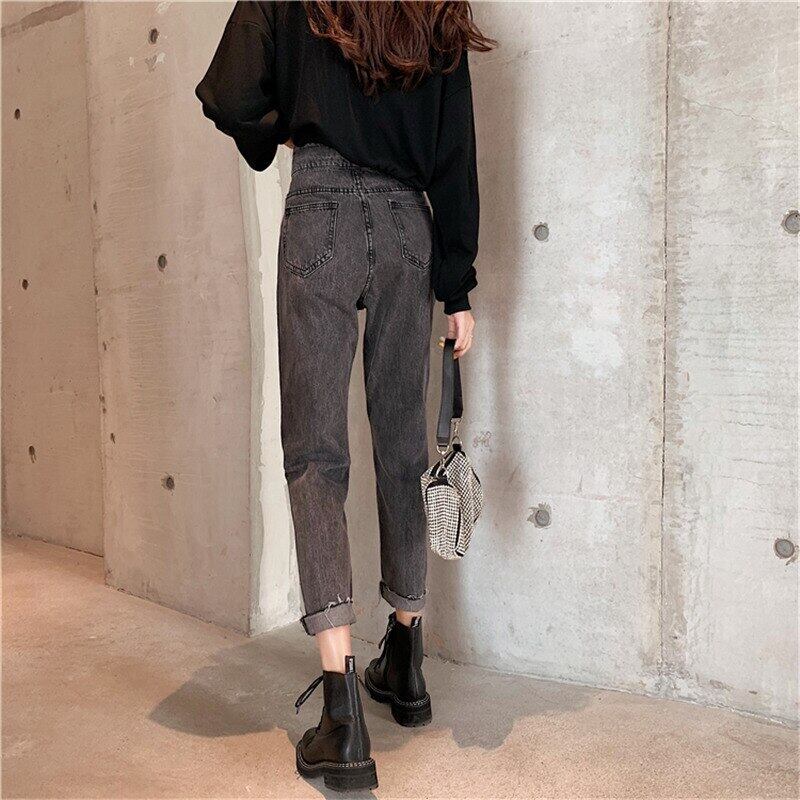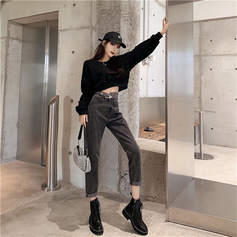 送料無料୨♥୧ オルチャンレディースストリートウェアスタイリッシュジーンズ ウェスト洗浄済みコットンデニムパンツ 原宿ヴィンテージハーレム AOS88255880060