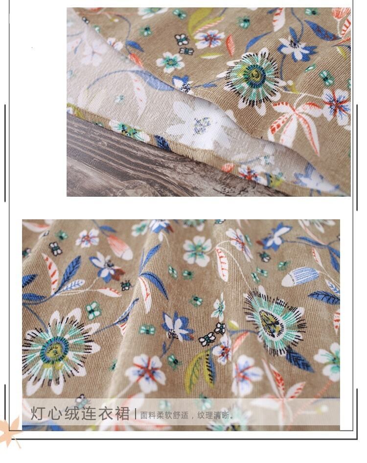 送料無料୨♥୧ 森オータムスプリングレディースフローラルドレス スタンドカラーカラーFlowerデザイン プリント柄ベスティドスヴィンテージコーデュロイロング AOS9842884344