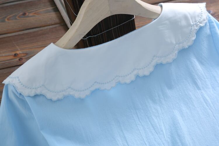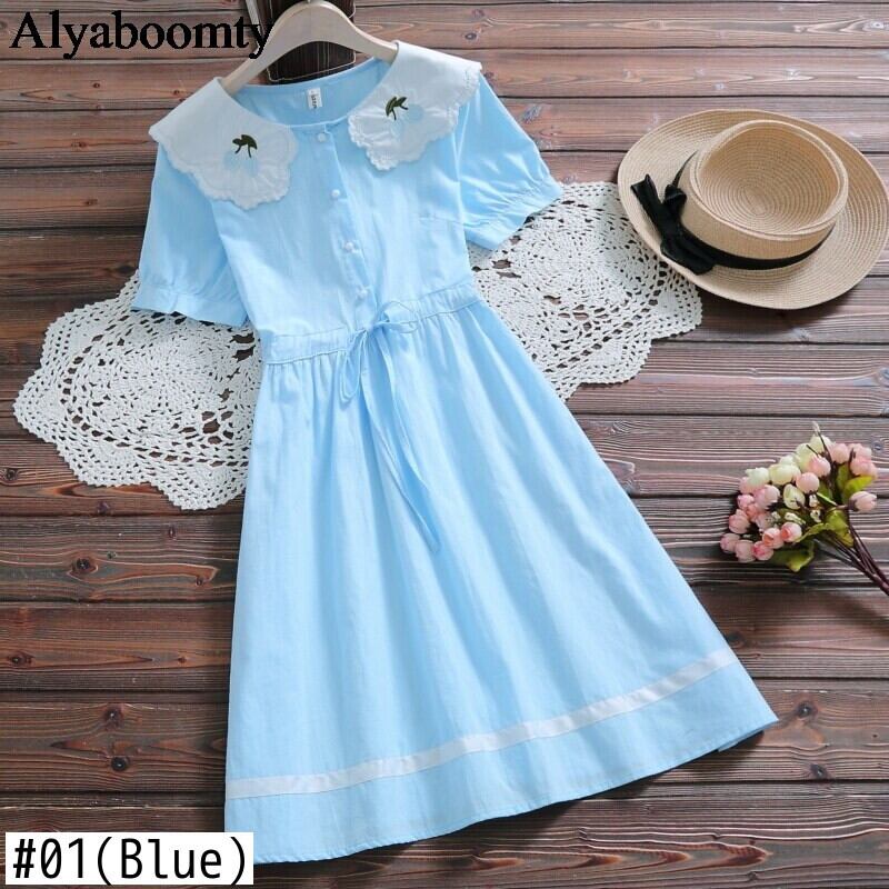 送料無料୨♥୧ 森サマーレディースピンクブルードレス ピーターパンカラーフルーツ刺繍レースアップローブ甘い半袖スリーブ AOS87026865422