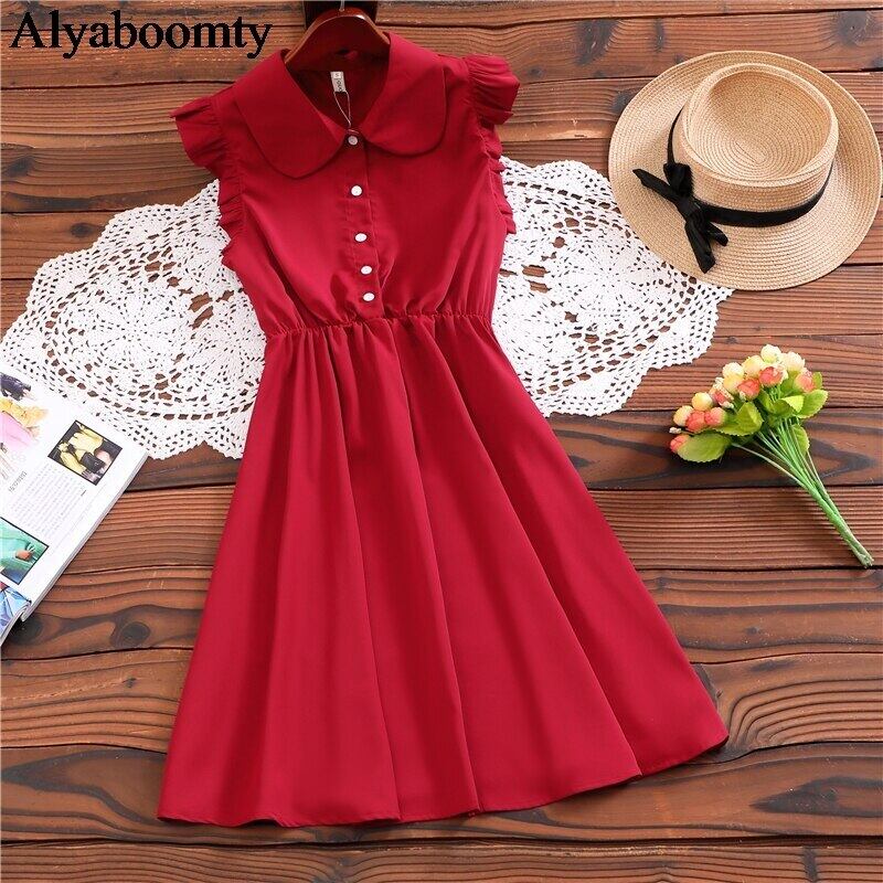 送料無料୨♥୧ シックサマーレディースミニワインレッドドレス ピーターパンカラーButterflyデザイン スリーブ可愛いAライン小さい AOS35493084194
