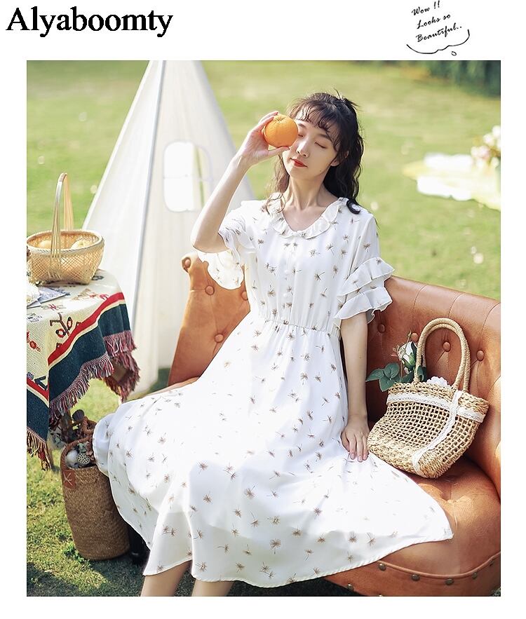 送料無料୨♥୧ ese森サマーレディースロングシフォンドレス ピーターパンカラーホワイトブラックたんぽぽフレアスリーブシック AOS40271771777