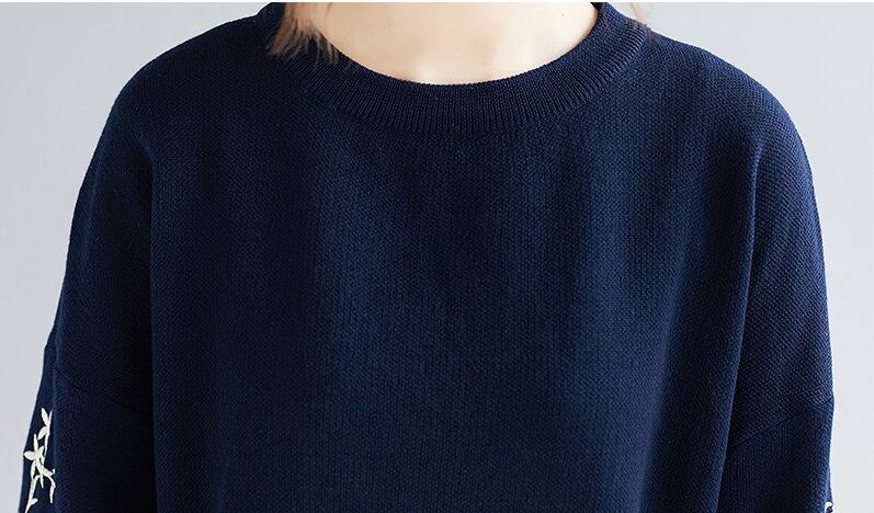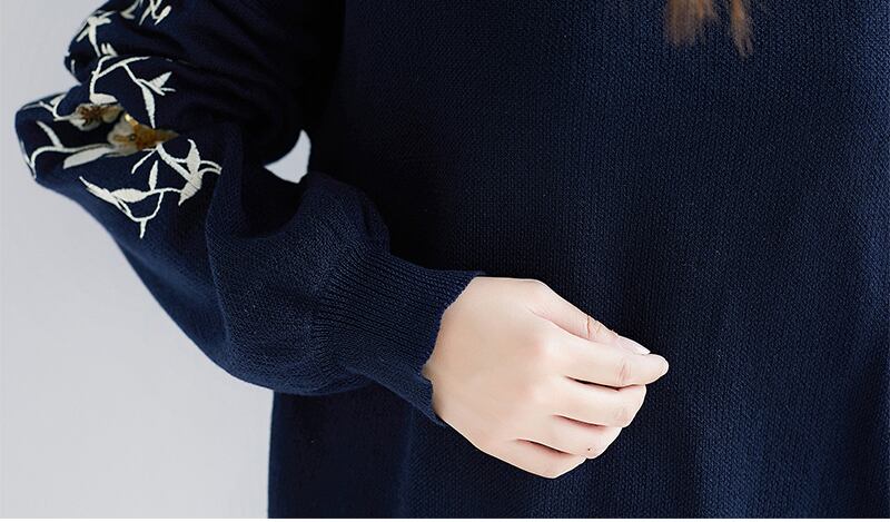 送料無料୨♥୧ オルチャンプラスサイズオータムウィンターレディースoセーター 首ネイビーブルーニットバギープルオーバー フローラル刺繍アウター AOS64601250157