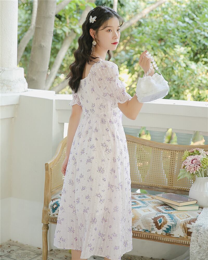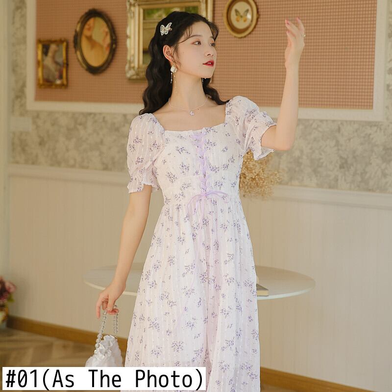 送料無料୨♥୧ 2021森サマーレディースフローラルドレス 平方カラーフランス語妖精バンドシックシフォンドレス ワンピース AOS14542092321