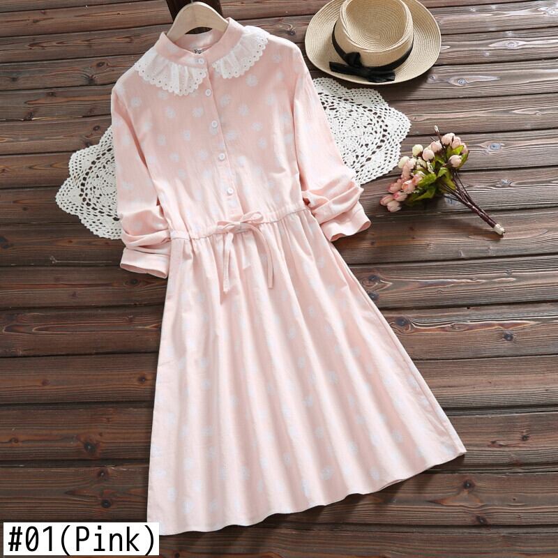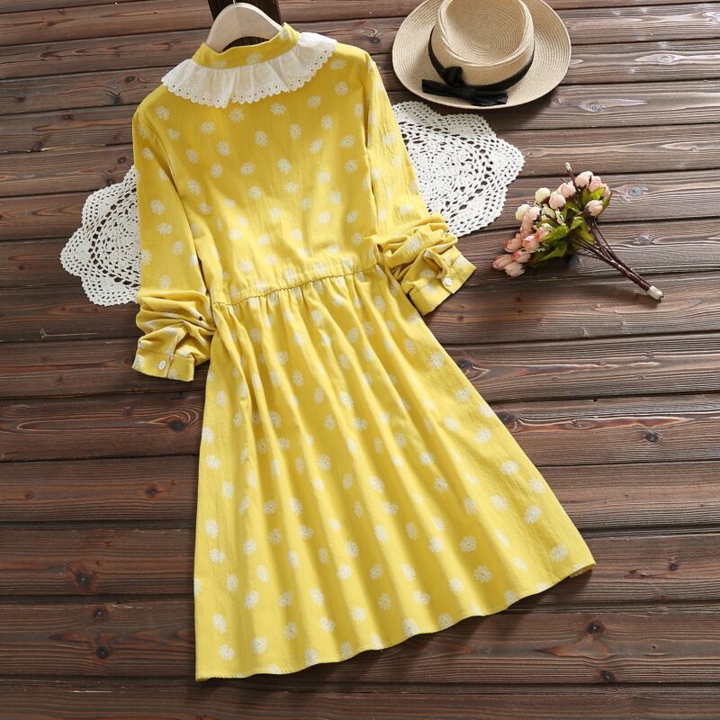 送料無料୨♥୧ 2021森オータムスプリングドレス イエローピンクフローラルプリント柄レースベスティドス可愛い甘いプレッピーコットンレディースドレス ワンピース AOS40464724782