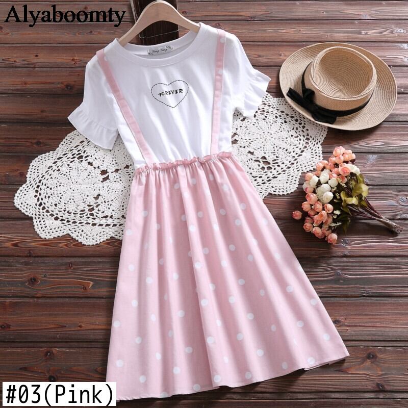 送料無料୨♥୧ 2021サマー若いスタイルレディース甘いドレス ブラックピンクブルー水玉パッチワーク刺繍文字の AOS10689301111