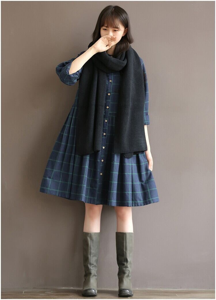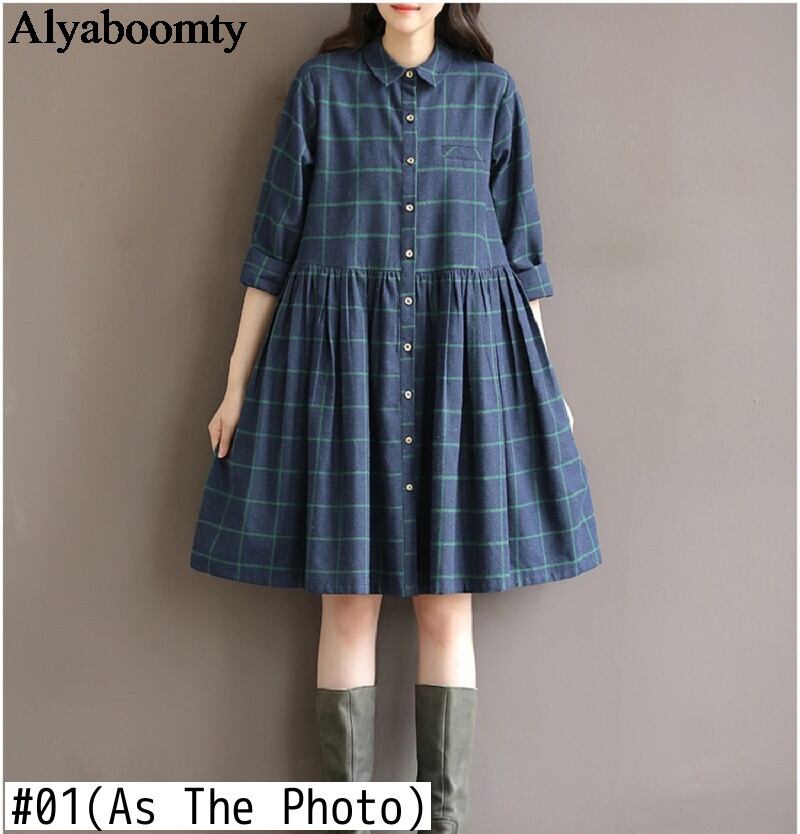 送料無料୨♥୧ 森スプリングオータムレディースシャツ ドレス 断るカラー特大バギー格子柄ルーズヴィンテージベスティドス AOS21104148164
