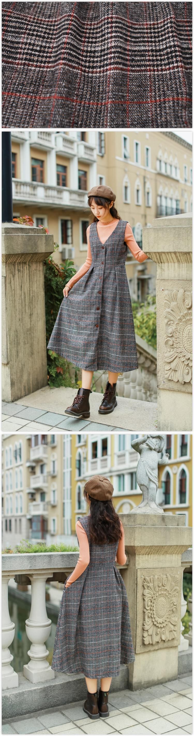 送料無料୨♥୧ 森オータムウィンターロングドレス レディースゴージャス格子柄スタンダードシャツ 甘いまともなウールレディパーティー AOS7225329279