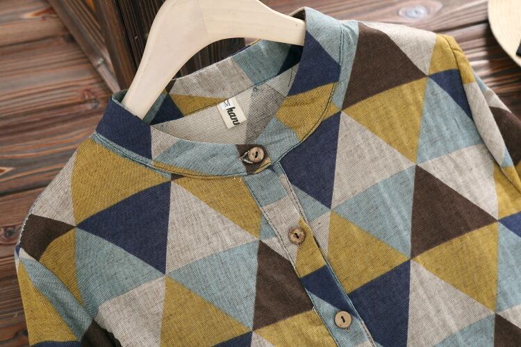 送料無料୨♥୧ ese森オータムスプリングレディースヴィンテージドレス スタンドカラーカラー幾何学的なプリントルーズコットンベスティドスフェミニーズ AOS89975572665
