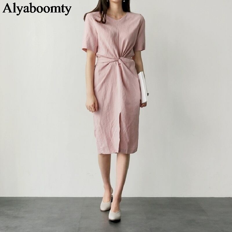 送料無料୨♥୧ 6シックサマーレディースロングドレス ソリッド ボディコンセクシーバンドミディスプリットコットンスタンダード AOS92733583010