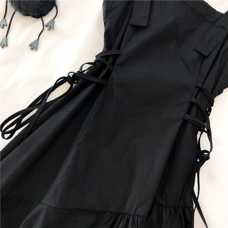 送料無料୨♥୧ ese原宿レディースストリートウェア不規則なドレス ゴシックパンクスタイルブラックバンドノースリーブスリム AOS93091599459