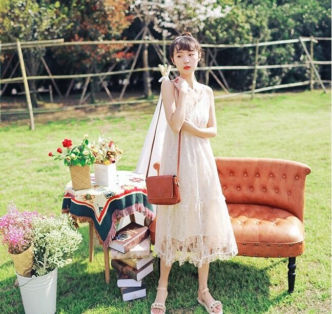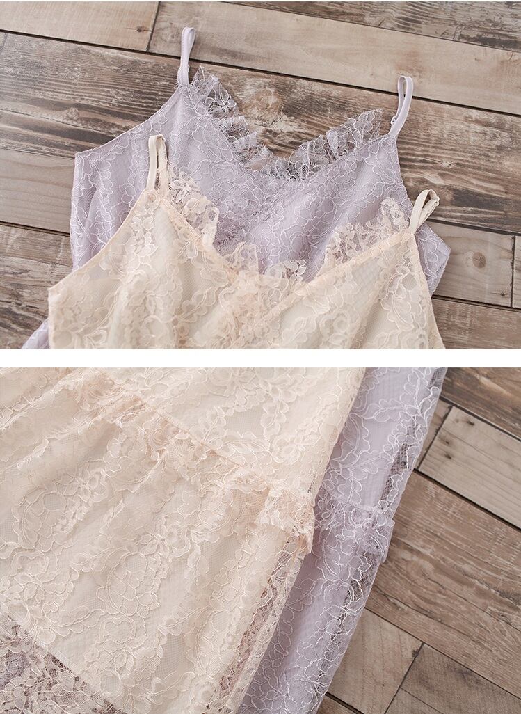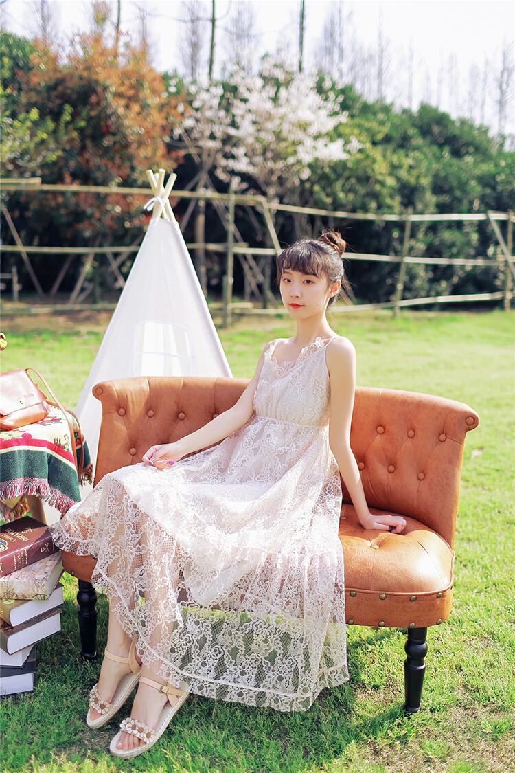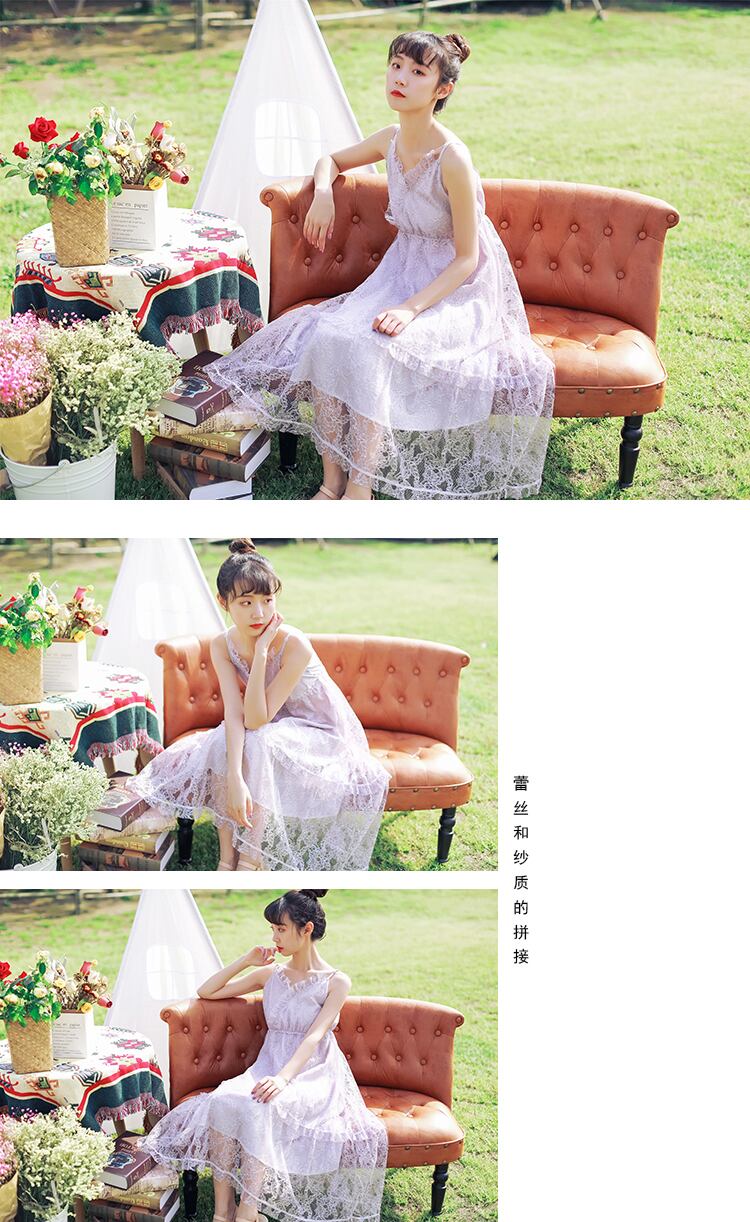 送料無料୨♥୧ 森サマーレディースロングドレス Vネックロマンチック妖精紫のベージュホローでるレースフリルパーティー AOS56751506170