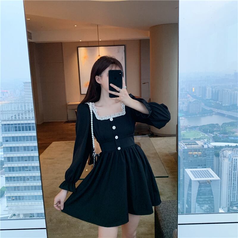 送料無料୨♥୧ eseオータムレディースミニロリータドレス 平方カラーとレースピンク格子柄ビーズフレアスリーブ可愛い AOS90454262380