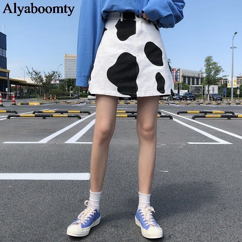 送料無料୨♥୧ ese原宿レディースストリートウェアAラインスカート ウェスト牛プリント柄ミニオルチャンコットン AOS86956695065