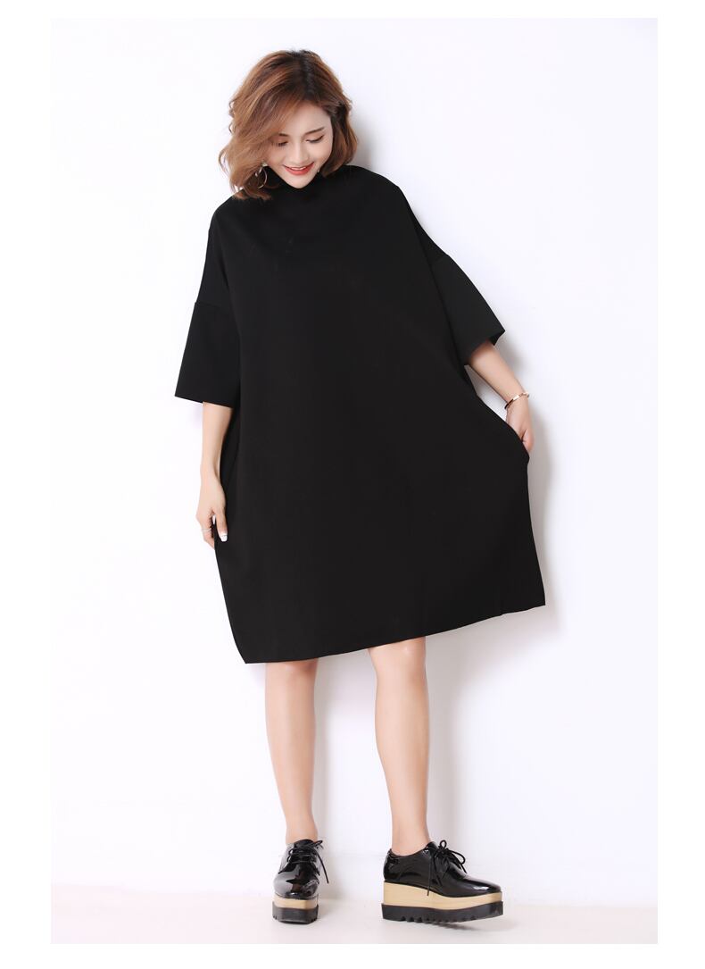 送料無料୨♥୧ ヨーロッパ人スタイル特大オータムウィンターレディースドレス タートルネック半袖スリーブブラックグレーvestidsoルーズいいね AOS97200137358