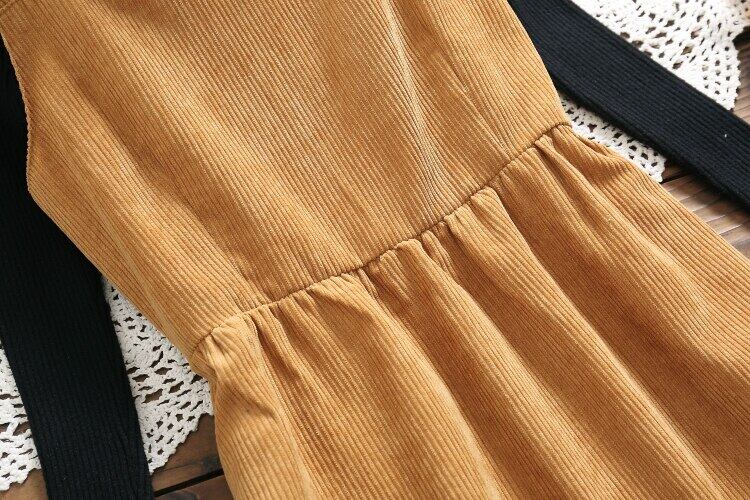 送料無料୨♥୧ 森オータムスプリングレディースミディドレス カーキヴィンテージコーデュロイフリル可愛い AOS10095796878