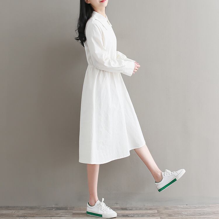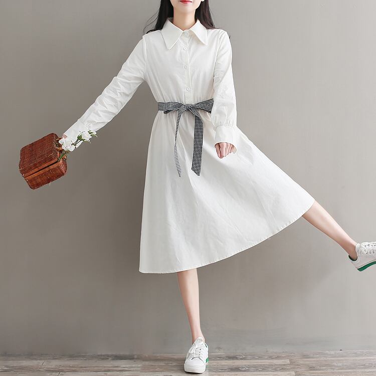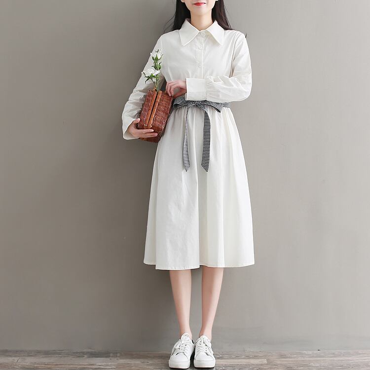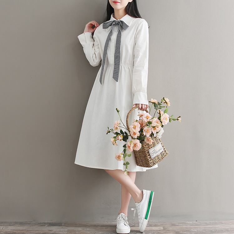 送料無料୨♥୧ eseプレッピースタイルレディースホワイトドレス 断るカラーコットンベスティドス長袖スリーブ格子柄リボン甘いの AOS35321652498