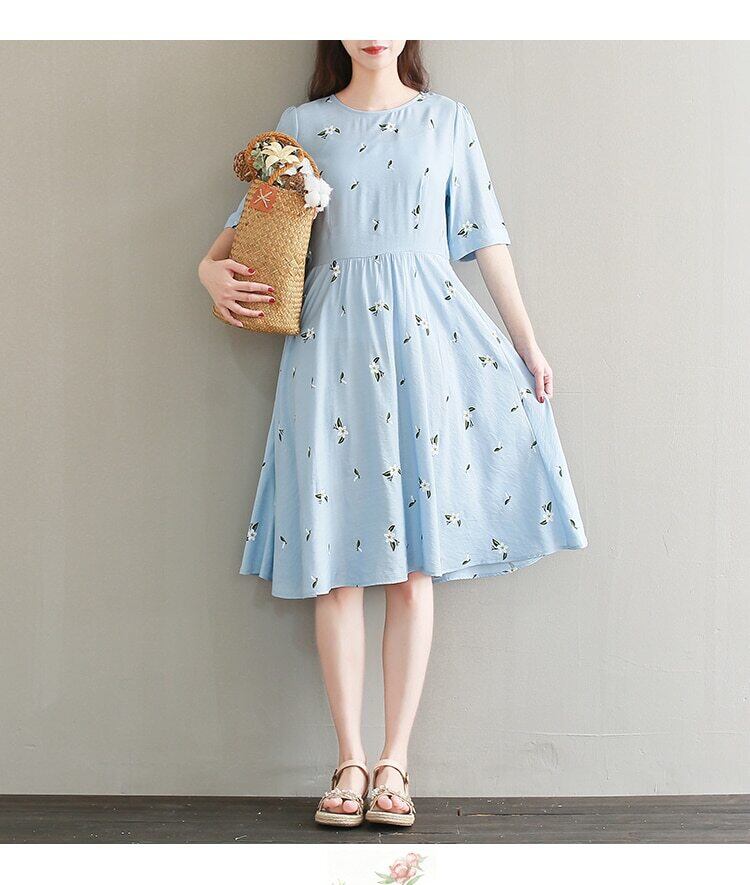 送料無料୨♥୧ 2021ese森oサマーレディースAラインドレス 首ブルーフローラルプリントシック甘い半袖スリーブ AOS43549427613