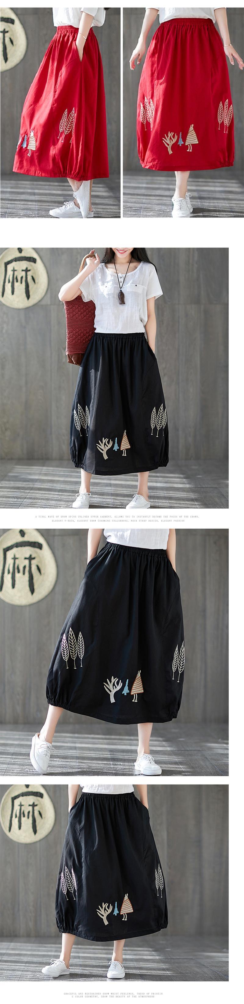 送料無料୨♥୧ ese森オータムスプリングレディースミディスカート ブラックレッドネイビーブルーアプリコットジュープコットンヴィンテージ刺繍 AOS50775007912
