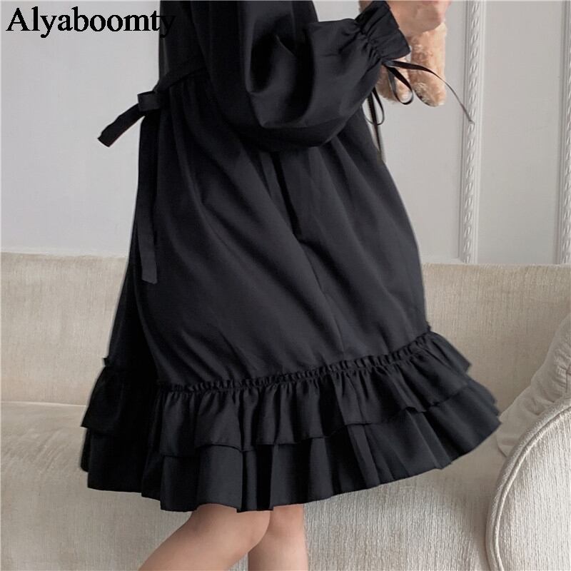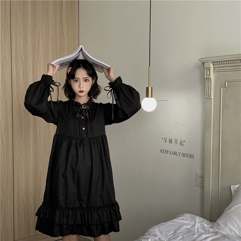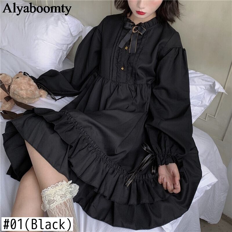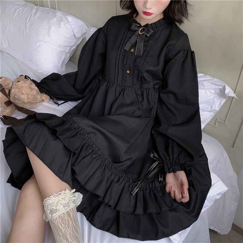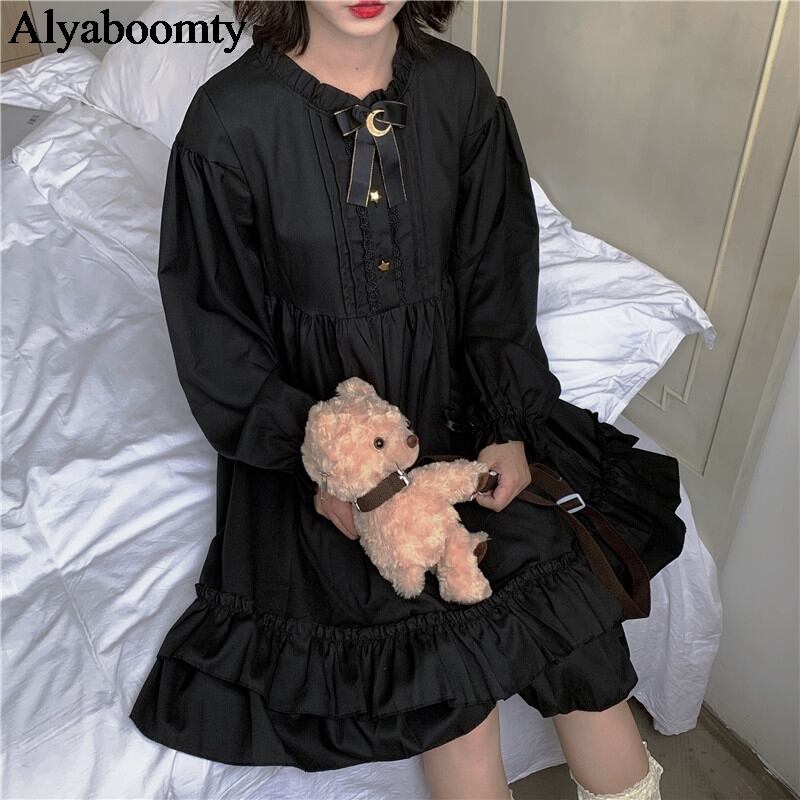 送料無料୨♥୧ eseプレッピースタイルレディースミニロリータドレス ゴシックブラックコスプレ原宿フリルと月ピン AOS90997466496