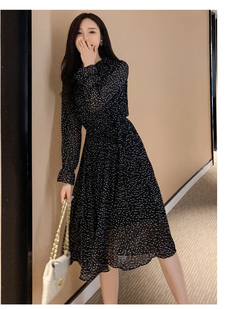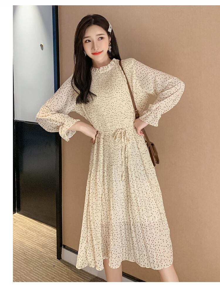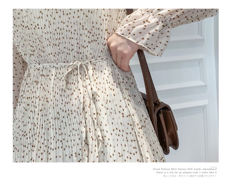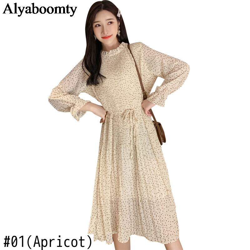 送料無料୨♥୧ 森オータムスプリングレディースミディプリーツドレス スタンドカラーカラー水玉アプリコットブラックルーズベスティドスシフォン AOS61696268077
